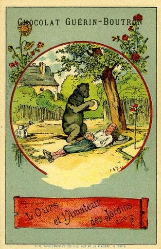 L'Ours et l'Amateur des jardins, VIII, 10 (Le texte de la fable est reproduit au revers)