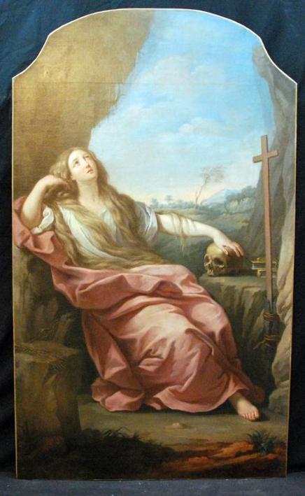 ce tableau a été peint, en 1752, pour l'autel de l'oratoire de l'appartement aménagé pour cette reine au Carmel compiégnois. Antoine Vivenel le croyait de Simon Vouet. Le comte de Marsy le premier la donne plus justement à Guido Reni. Ce maître créa l'original pour le cardinal Antonio Santacroce, puis le tableau passa aux mains du cardinal Antonio Barberini, enfin au palais Sciarra. Il est aujourd'hui conservé à la Galleria Nazionale d'Arte Antica (inv. 1437). Notre copie est simplifiée car de taille plus modeste que l'original (232 x 152 cm.)