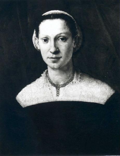 Le modèle de ce portrait demeure anonyme. Vêtue, parée et coiffée à la manière des dames de la société florentine vers le milieu du XVIe siècle, cette femme serait selon F. Bologna (com. écrite, rapportée par Laclotte dans cat. exp. Paris, 1965-1966), le même modèle que celui représenté à des âges différents dans trois oeuvres attribuées respectivement à Pier Francesco Foschi (actif à Florence au XVIe siècle) (Amsterdam, Rijksmuseum), Pontormo ou son atelier (Paris, musée Jacquemart-André) et Tosini (Florence, Palais Pitti). Une radiographie et une restauration effectuées en 1966 ont révélé la partie supérieure de la tête d'une fillette en bas à droite ; la raison de la mutilation du panneau dans la partie inférieure n'est pas expliquée (adaptation à un cadre ou accident ?) ; en revanche la date du repeint doit être située entre 1861 (apparition du tableau à la vente Daigremont avec partie supérieure du visage de la fillette) et 1894 (date de publication du catalogue du musée où seul le portait de la mère est signalé). Cette oeuvre est entrée au musée comme étant de Cristofano Allori (Florence, 1577 - Florence, 1621), puis a été attribuée par Berenson (1932) à Jacopo Carruci, dit Il Pontormo (Pontormo, 1494 - Florence, 1556) ; cette dernière attribution a été finalement abandonnée par l'historien lui-même. Tout en plaçant l'oeuvre parmi les anonymes florentins du deuxième quart du XVIe siècle influencés par Pontormo, Laclotte (1965-1966) établit un parallèle avec le Portrait de jeune homme du City Art Museum de Saint Louis successivement donné à Francesco de' Rossi, dit Salviati (Florence, 1510 - Rome, 1563), Carlo Portelli (Loro Ciuffenna, ? - Florence, 1574) ou Michele Tosini (Florence, 1503 - Florence, 1577) ; il se prononce avec beaucoup de prudence pour cette dernière hypothèse (qui recoupe l'attribution d'un autre portrait de cette même femme à cet artiste). En 1966, Shearman avance le nom de Tommaso Manzuoli, dit Maso da San Friano (San Friano, 1536 - Florence, 1571), idée reprise par Cannon Brookes (1966) qui date le panneau avant 1556 et donne au même auteur le portrait d'Amsterdam déjà cité. Adoptée par Auffret (1982-1983), cette idée semble aujourd'hui abandonnée par la critique qui préfère maintenir l'oeuvre dans l'anonymat plutôt que de trancher dans le délicat problème des portraits florentins du milieu du XVIè siècle. Notice de Matthieu Pinette