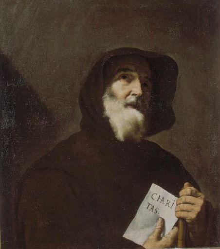 Identifié dans tous les catalogues du musée comme une représentation de saint François d'Assise (1182-1226), ce tableau figure en fait saint François de Paule. Né ne 1416, à Paola (Paule), en Calabre, Francesco Martotilla, ermite dès l'âge de quatorze ans, fonde cinq années plus tard une communauté vouée à la pauvreté et à l'humilité, qui deviendra l'ordre des Frères minimes, approuvé en 1474. Venu en France à la demande de Louis XI, pour tenter de guérir le roi malade, il décide, après la mort de celui-ci (1483), de fonder des couvents à Amboise et à Montils-les-Tours. Décédé à Plessis-les-Tours en 1507, François de Paule est canonisé dès 1519. Le saint ascète apparaît ici en buste, les épaules couvertes d'une robe de bure et la tête d'un capuchon agité par le vent; sa main gauche serre un bâton tandis que la droite tient une pancarte sur laquelle est inscrite sa devise : Charité. L'homme à barbe blanche, le visage marqué par l'âge, a le regard extatique tourné vers les cieux comme pour intercéder humblement auprès de Dieu. Pérez Sanchez et Spinosa (1978, pp. 131-132) ont dénombré pas moins de huit versions de cette composition, toutes du XVIIème siècle et ' de mains différentes', parmi lesquelles ils placent celles d'Amiens. On doit ajouter à cette liste la version maltaise; ils ne retiennent aucune de ces toiles comme l'original du maître. Cependant la qualité de l'exemplaire amiénois, révélée par une récente restauration, pourrait permettre d'y voir une oeuvre autographe, malgré le manque d'empâtements. Dans cette composition, Ribera se montre fidèle à ses principes picturaux de représentation de figures emblématiques : il tente de concentrer tous ses effets sur le personnage en buste et son expression. Un réalisme radical impose la silhouette et le caractère monochrome du tableau, au fond uni et sombre, fait émerger avec d'autant plus d'efficacité le visage du saint homme, principal objet de l'oeuvre. notice de Matthieu Pinette