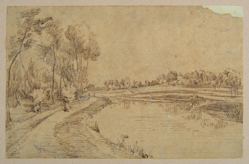 Ce dessin représente la Somme et le chemin du halage à Dreuil-lès-Amiens (Somme).