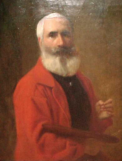Autoportrait de Jules Dehaussy à l'âge de 47 ans, le pinceau et la palette à la main.