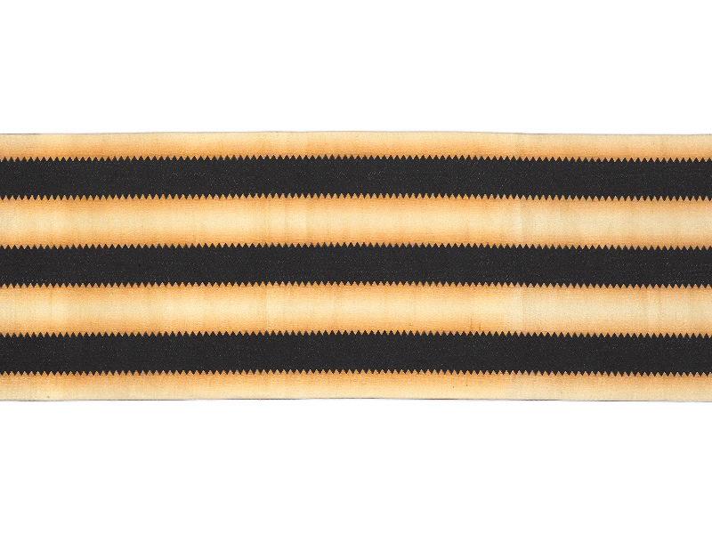 Ruban à rayures, alternance de bandes jaunes orangés ombrées et de bandes noires dentelées