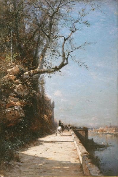 Réalisée pendant un séjour en Italie et à Venise vers 1875, Cette oeuvre montre son intérêt pour les peintres paysagistes tels que Ravier, Carrand et Corot. Utilisant une palette plus claire et plus chaude, son jeu de contrastes lumineux révèle les couleurs de l'Italie