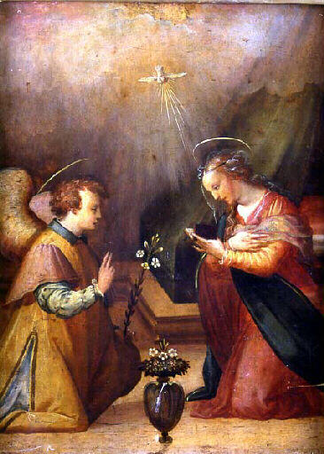 Cette composition est inspirée de l'Annonciation d'Andrea del Sarto (Florence, Palais Pitti)