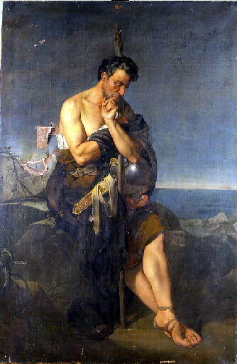 figure (Caïus Marius, homme, général : Romain, homme politique, épée, assis, Carthage, ruines)