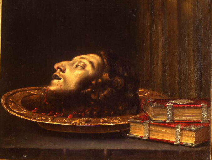 figure biblique (tête : saint Jean-Baptiste, livre, plateau, décollation)