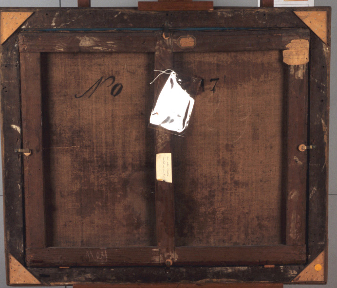 étiquette manuscrite, Sur le châssis : angle sup droit pastille jaune : 1010 ; étiquette manuscrite, Sur le châssis : au centre : anc. attr. Courtoix Combat de cavalerie ; numérotation, Sur la toile : : 23 ; étiquette manuscrite, Sur le châssis : en haut au centre : 23 M Philippe Bataille choc de cavalerie Assez bon ; étiquette manuscrite, Sur le châssis : angle sup droit : Ville de Chambéry Musée des beaux arts Inventaire N° : 23 Objet : peinture sur toile Auteur : M Philippe Sujet : Bataille choc de cavalerie <ill> M Rey Dimensions : 0;75 x 0,91 Propriétés : Ville Cadre : Doré 1,07 x 0,94 Observations : assez bon état ; numérotation, Sur la toile : à la craie au centre : 23