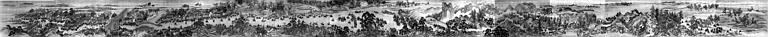 Rouleau intitulé Voyage d'inspection dans le Sud, n° 2 de la série. Inscription au début de la peinture faisant l'éloge des générosités de l'empereur Kangxi lors de son passage dans la province du Shandong. Le rouleau, très semblable au rouleau : Voyage dans le Sud de l'empereur (MA 2460) tant par sa composition que par son style, ne porte ni signature ni cachets