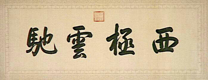 Au début du rouleau, titre en grands caractères. A la suite de la peinture, un colophon et des cachets