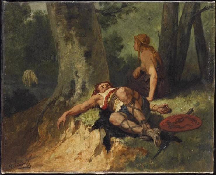 Ce tableau peut être rapproché, par sa composition et son sujet, d'une autre peinture de Luminais : Les Eclaireurs gaulois (Bordeaux, musée des Beaux-Arts, inv. E 719)