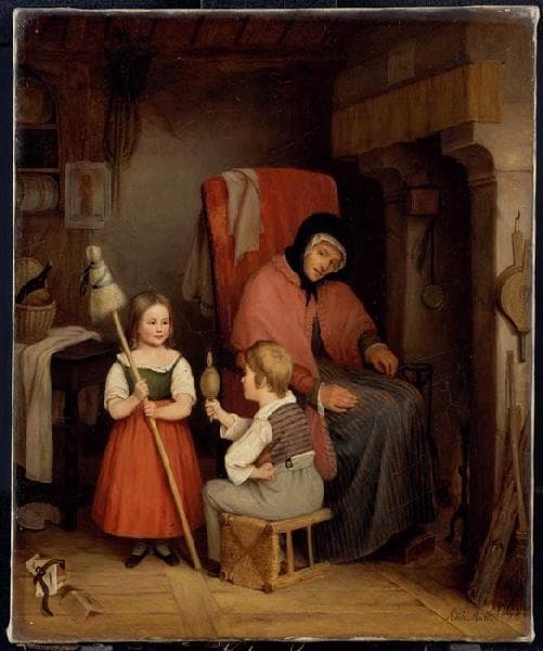 Scène d'intérieur avec une femme et deux enfants