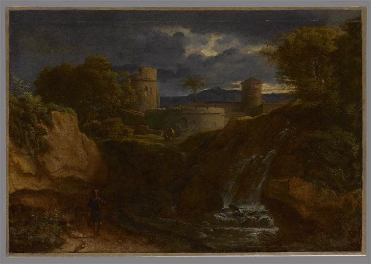 Laveissière a proposé d'y voir une oeuvre du XVIIIe (communication orale, septembre 1999). ; Rejeté de l'oeuvre de Gaspard Dughet par M.-N. Boisclair. Le nom de Francisque Millet, proposé sur le cartel du musée, est écarté par B. Biard (communication écrite, 22 décembre 1995). Il semble prudent de classer ce tableau et les deux autres dans la suite de Dughet, dont la production fut largement imitée.