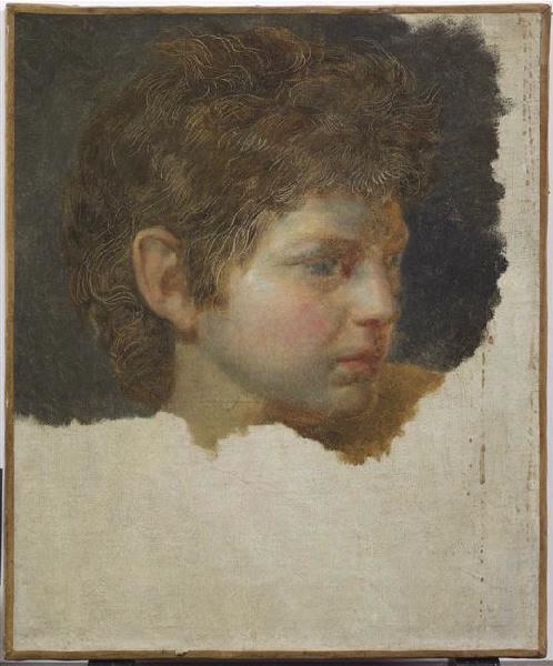 Cette esquisse est à rapprocher d'une Tête de jeune homme au diadème peinte en 1780 par David, dont la partie inférieure est également inachevée (Montpellier, musée Fabre). J.G. Drouais (1763 - 1788), par lequel l'oeuvre serait passée, entra dans l'atelier de David en 1780.