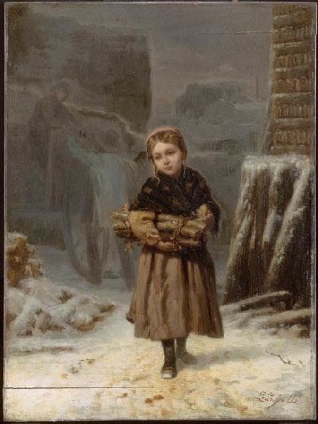 Voir tableau proche de celui de la collection Magnin, Petite fille portant des seaux d'eau dans la neige (Sotheby's, Londres, 23 septembre 1981). ; Lassalle est un artiste peu connu qui réalisa des scènes de genre ou des figures, telle que celle du musée Magnin. F. Tétart-Vittu observe que cette fillette est difficile à dater car c'est un vêtement très simple : elle peut être située entre 1840 et 1850 mais pourrait être plus tardive si l'enfant est relativement pauvre (communication écrite, 21 juin 2015).