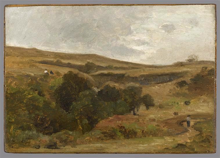 Ce paysage de collines et d'arbustes n'a pu être identifié. On le rapprochera, par sa facture, du Paysage à la mare du musée des Beaux-Arts de Dijon (Quarré, 1968 n° 515).