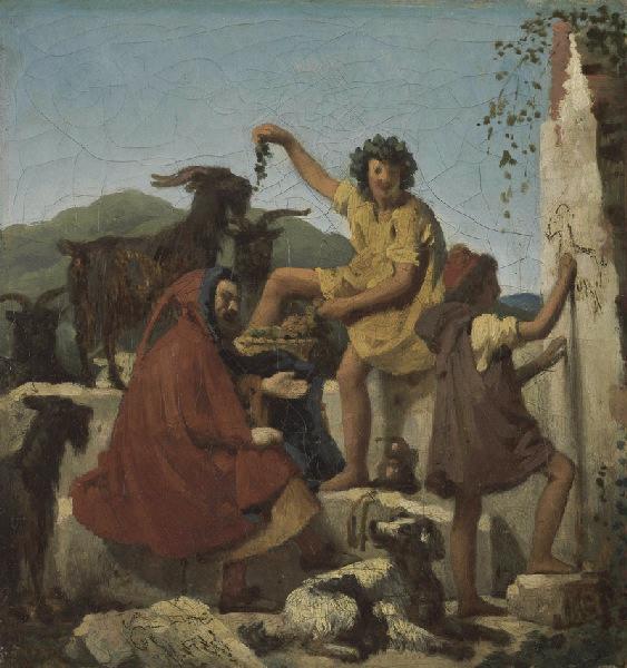 Cette oeuvre traite, avec des différences, le même thème que le tableau 1938 F 352 L'Enfance de Giotto, acquis postérieurement par M. Magnin. S'agit-il d'une esquisse préparatoire de Forestier pour une composition non retrouvée ?