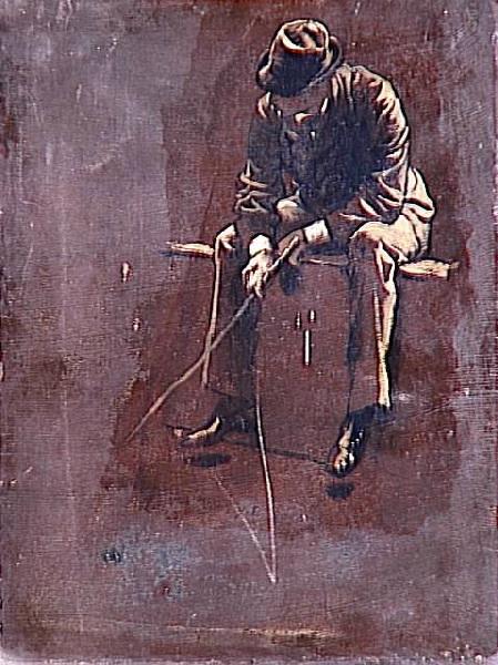 Ces deux études sont réalisées en quelques coups de pinceau de peinture noire, rehaussés de touches blanches et jaunes sur un fond préparé en brun. Le recto est préparatoire à la figure de Kathleen Newton jouant aux échecs dans 'La Chambre donnant sur le port', tableau exécuté vers 1876-1878 (Londres, collection particulière - Matyjaszkiewicz, op cit., n° 71 repr.). Kathleen Newton fut l'amie et le principal modèle de l'artiste pendant de nombreuses années. Le verso est une étude pour l'homme qui apparaît à droite dans 'Le Pont de Richmond', de 1878 (autrefois dans une collection particulière à Londres, passé en vente chez la galerie Stair Sainty - Matyjaszkiewicz, op. cit., n° 99 repr.).