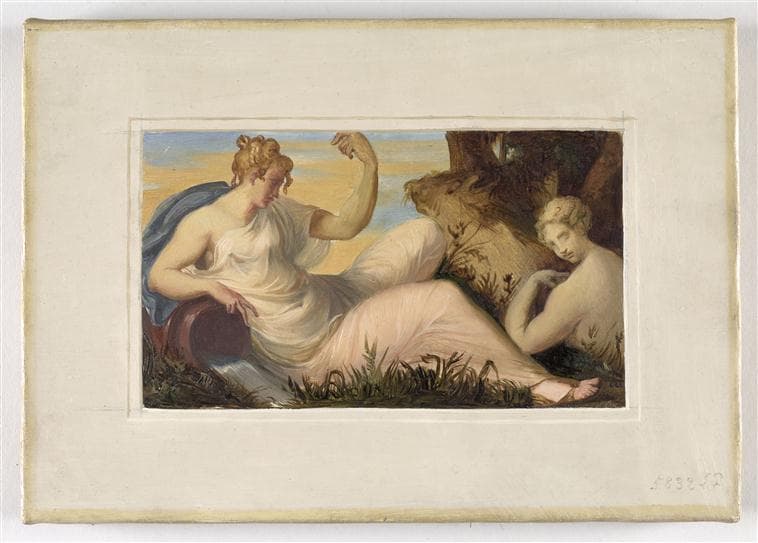 Esquisse (ricordo) d'après les fresques de la salle de Bal restaurées par l'artiste ; Dans un même cadre avec Bacchus (?), Janus, (La Résolution ?), deux hommes, femme tenant une coupe
