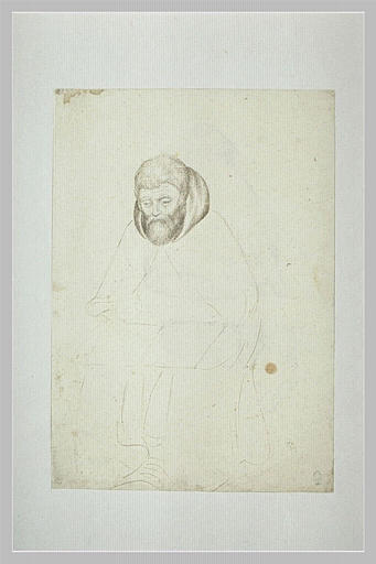 POP | Plateforme ouverte du patrimoineHomme barbu, vêtu d'une pèlerine à capuchon, assis et lisant