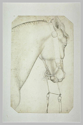 POP | Plateforme ouverte du patrimoineTête et encolure d'un cheval harnaché, la bride pendante