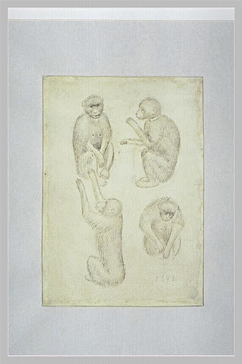 POP | Plateforme ouverte du patrimoineQuatre singes assis, dans des attitudes différentes