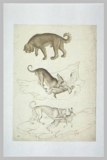 POP | Plateforme ouverte du patrimoineTrois chiens de chasse : l'un marchant, les deux autres chassant