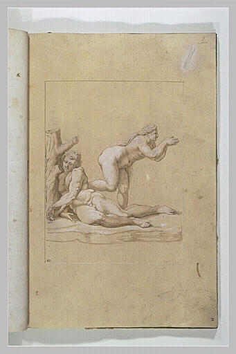 Album Buonarroti Michelangelo, copie d'après, folio 4, dessiné au recto ; Album semi-factice, cartonné, recouvert de papier beige, à dos de peau fauve, comprenant 38 folios numérotés. H. 0,427 ; L. 0,286
