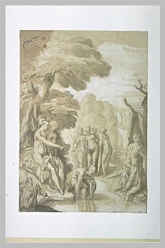 scène mythologique (Diane, Callisto, nymphe, baignade)