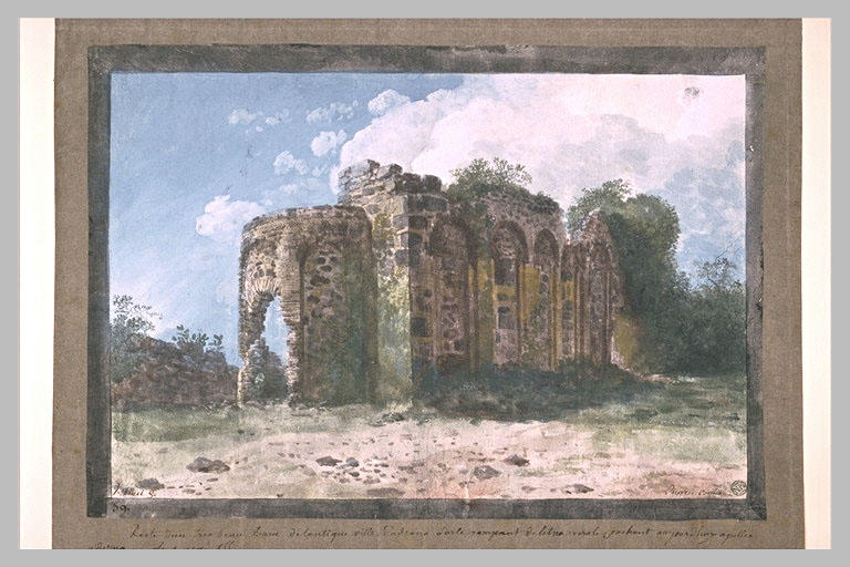 Ce dessin fait partie d'une série de 46 gouaches pour le Voyage pittoresque des isles de Sicile, de Malte et de Lipari, où l'on traite des Antiquités qui s'y trouvent encore ; des principaux Phénomènes que la Nature y offre ; du Costume des Habitans, & de Quelques Usages par Jean Houel, Peintre du Roi, à Paris. Gravé dans le volume III, planche CLV.
