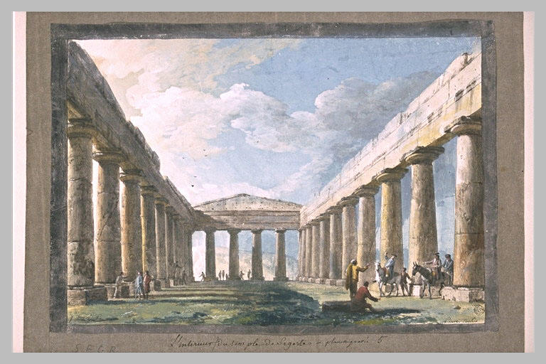 Ce dessin fait partie d'une série de 46 gouaches pour le Voyage pittoresque des isles de Sicile, de Malte et de Lipari, où l'on traite des Antiquités qui s'y trouvent encore ; des principaux Phénomènes que la Nature y offre ; du Costume des Habitans, & de Quelques Usages par Jean Houel, Peintre du Roi, à Paris. Gravé dans le volume I, planche IV.