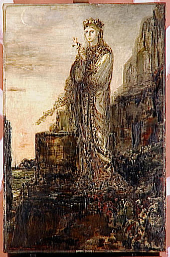 scène mythologique (Hélène, couronne, vêtement, fortification, Troie, cadavre, crépuscule)