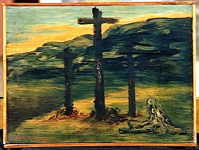 scène biblique (Calvaire, Sainte Madeleine : assis, ciel)