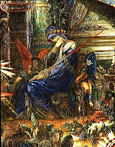 Une des dernières grandes oeuvres achevées par l'artiste. Oeuvre agrandie par des ajouts de toile pour mieux centrer Jupiter. La composition reprend le panneau central du polyptyque d'Anchin par Jean Bellegambe, représentant la Trinité. Certains personnages sont repris d'illustrations de John Flaxman. Plusieurs ébauches, esquisses et photographies permettent de voir l'évolution de cette peinture