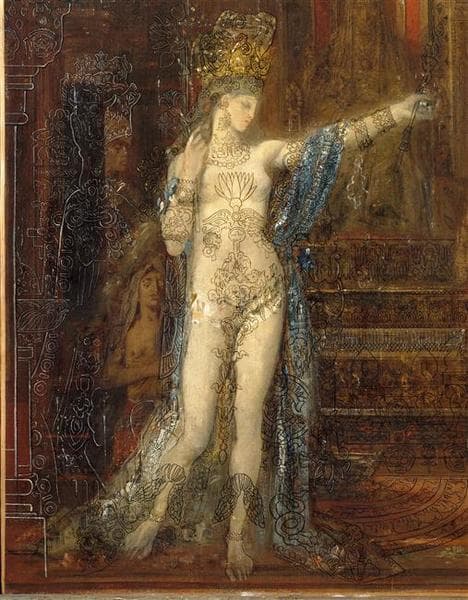 Le thème de Salomé est traité à partir de 1872, des variantes montrent les différentes étapes avant, pendant et après la décollation de saint Jean-Baptiste. Deux oeuvres sont présentées au Salon de 1876 sur ce thème : L'Apparition et Salomé dansant devant Hérode (Los Angeles, Californie, The Armand Hammer Collection). Les motifs à l'encre noire d'origines égyptienne, médiévale, orientale sont repris de publications telles que la grammaire de l'ornementation d'Owen Jones, les Monuments français de Nicolas Xavier Willemin et la revue le Magasin pittoresque