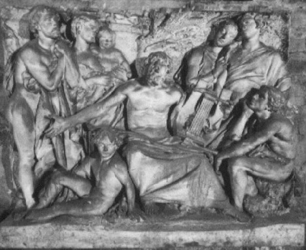 scène mythologique (Homère, assis, lyre, homme de lettres, personnage)