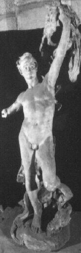 Prix de Rome de sculpture, Concours académiques, en 1876 ; Programme du concours définitif pour le Grand Prix de Sculpture : 'Jason, fils du roi Eson enlève la Toison d'Or, après avoir endormi, au moyen d'un breuvage magique, le dragon qui gardait l'arbre auquel elle était suspendue. Paris le 8 mai 1876.' Archives nationales, AJ-52-195 Voir 'l'Illustration' du 19 juillet 1930. Doc. Orsay : ALN 1983-69/35a et 70/2. Répliques en bronze (fonte Barbedienne) dans jardin derrière l'Hôtel de Ville d'Orléans. Modèle en bronze : publicité dans le catalogue de la maison Susse
