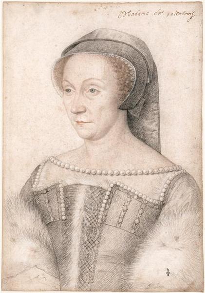portrait (Poitiers Diane de, Valentinois duchesse de, femme, en buste, de trois-quarts, coiffe, fourrure)