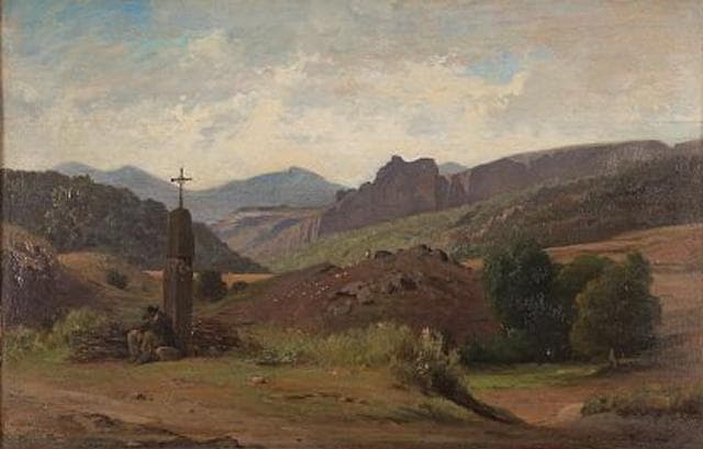Paris, 1815 ; Paris, 1891 ; Il commença son apprentissage de la peinture auprès de François-Edouard Picot puis de Léon Cogniet. Il peignit des paysages aux alentours de Paris, Compiègne, Fontainebleau. En 1834, il exposa pour la première fois au Salon. En 1837, il entra à l'Ecole des beaux-arts de Paris et se vit attribuer le second prix de Rome dans la catégorie paysage historique. Il fit ensuite trois voyages en Italie, dont un en compagnie de Jean-Baptiste Camille Corot, avec qui il partage son studio romain. En 1843, il remporta le premier prix de Rome. Fidèle durant toute sa vie au genre du paysage historique dans la tradition de Claude Lorrain, sa manière devint plus personnelle au fil des années. Ses effets de lumière influencé par son ami en mentor Camille Corot firent sa popularité. Benouville s'attacha toutefois plus que Corot à la précision et à la clarté du détail. Lorsqu'à celles-ci se joignent un sens très sûr de la composition, le tout rehaussé par un jeu de contrastes entre teintes délicates, il exprime alors le meilleur de son talent.