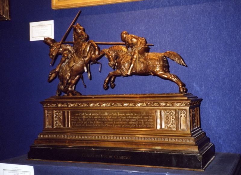 La scène représente le tournoi du duc de Clarence (1449-1798) : il s'agit d'un épisode de la guerre de cent ans où le duc de Clarence, fils de Richard, duc d'York et frère du roi d'Angleterre Henri V, qui prit une grande part dans la querelle entre la maison d'York et de Lancastre, fut tué.