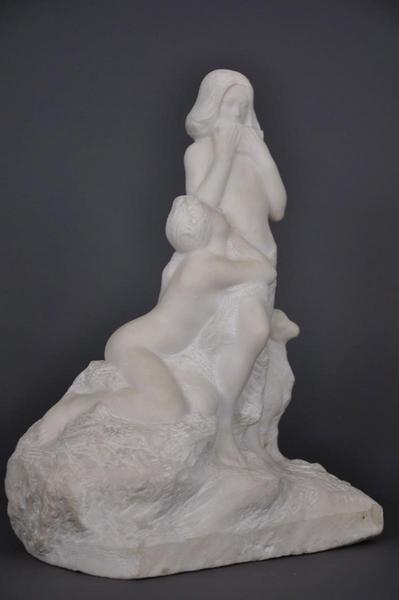 Le groupe a été exposé au Salon de 1903. Le sujet est inspiré de Longus, Daphnis et Chloé, roman pastoral grec du 3e-4e siècle. Daphnis, berger Sicilien d'une grande beauté, gagne le coeur des Muses et des nymphes dont celui de Chloé.