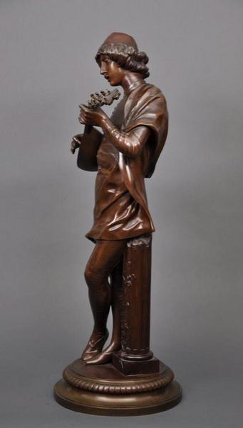 Un jeune homme, vêtu à la florentine, joue de la mandoline. Cette sculpture, qui combine des volumes très lisses et longilignes, et une grande précision dans le détail des vêtements et de l'instrument de musique, fut l'une des plus populaires de l'époque. C'est la deuxième version qu'en donna Paul Dubois. Elle se distingue de la première par la présence d'un tronc d'arbre derrière le musicien.