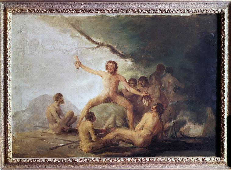 On a voulu reconnaître autrefois dans ces panneaux (Les Cannibales et Cannibales dépeçant leurs victimes) l'illustration de faits historiques précis [...]. Sans risquer une identification hasardeuse contentons-nous d'y voir la mise en scène de primitifs, dont la nature exacte n'est pas déterminée et ne constitue pas la préoccupation essentielle de l'artiste [...].Très légèrement brossés dans des tons blonds et doux, les tableaux peuvent dérouter par l'horreur de ce qu'ils traitent ; on doit pourtant admettre que chez Goya le sujet [...] disparaît derrière sa traduction picturale [...], seules la qualité de la touche, nerveuse et transparente, l'économie chromatique et la structure de la composition [...] préoccupent l'artiste. (in PINETTE Matthieu et SOULIER-FRANCOIS Françoise, De Bellini à Bonnard, Paris, Pierre Zech Editeur, 1992, p.158)