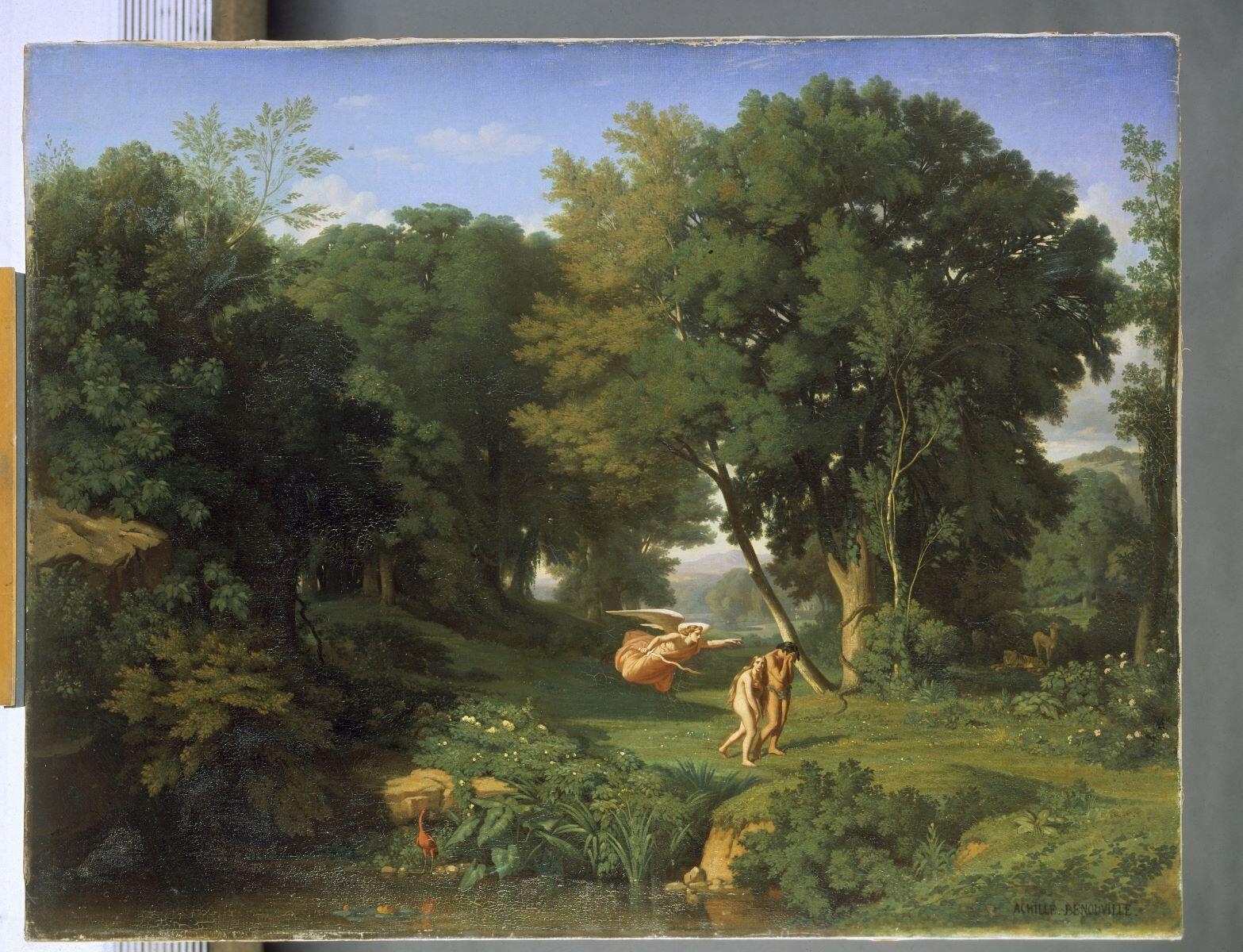 Salon de 1842 (n° 91) ; acquis par l'Etat à l'issue du Salon ; dépôt de l'Etat à Besançon, 1842sujet du concours pour le Prix de Rome du paysage historique en 1841 à l’Ecole des beaux-arts de Paris. Bénouville se présentait pour la seconde fois au concours (qu'il obtient en 1845)