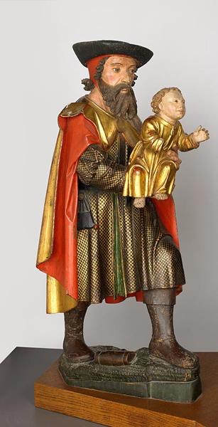 bois de noyer commun polychromé et doré ; bois enduit de préparation blanche (à base de gypse)