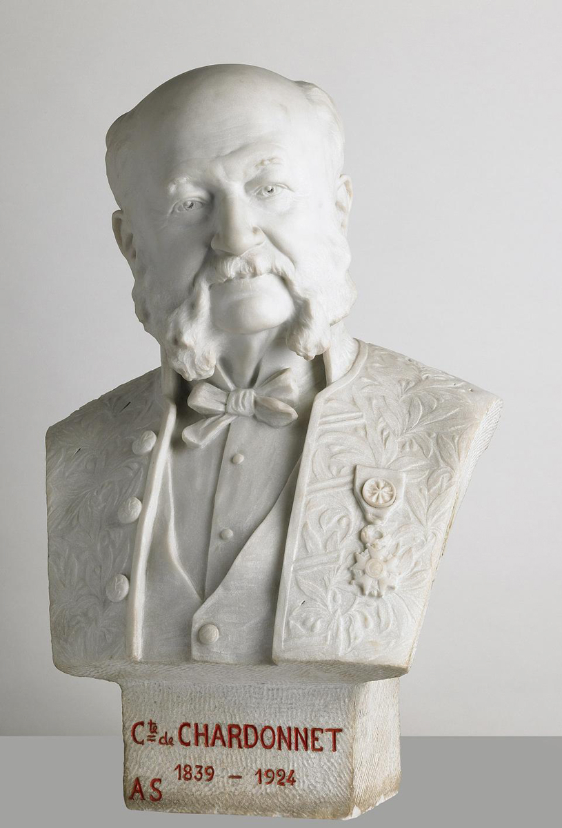 signé et daté sur l’épaule droite : A. de Chardonnet/1923 ; inscription sur la face antérieure du socle : Cte de Chardonnet /1839-1924/AS