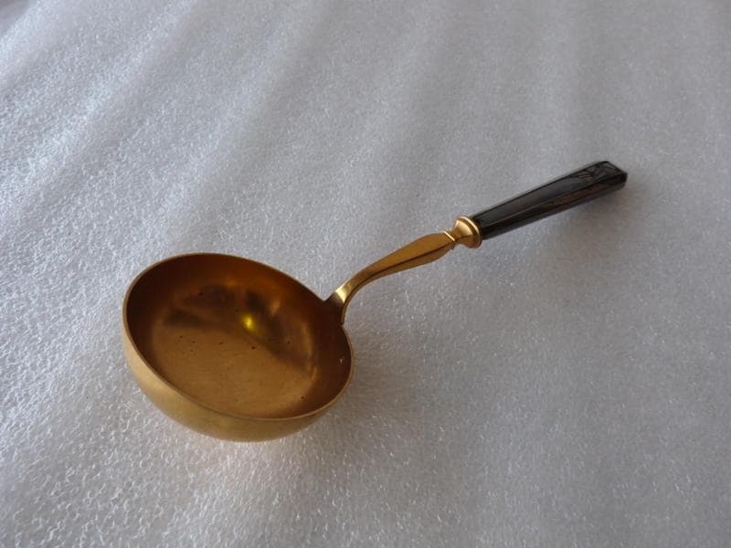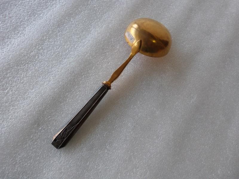 louche à crème en métal argenté ou vermeil ?; manche orné de motifs géométriques dans partie supérieure