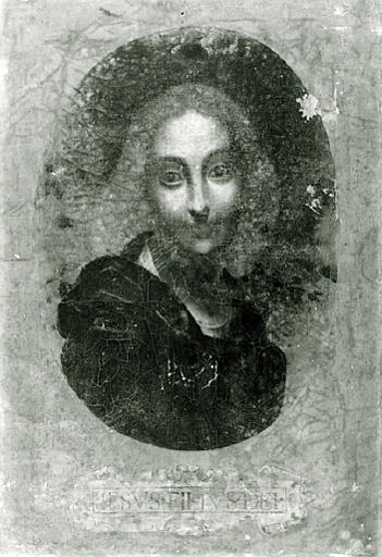 non signé, non daté ; sur la face : philactère peint 'IESUS.FILIUS.DEI' ; revers chassis : inscriptions '102' et '917'