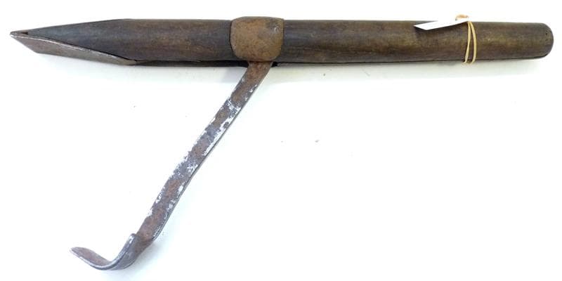 Outil de tonnelier utilisé pour permettre la mise en place des cercles d'extrémité et pour placer la dernière pièce de la fonçaille dans le tonneau