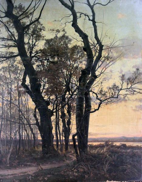 signé en bas à droite : Paul Saïn inscription craie blanche au revers : réserve du moulin de St (?) près d'Alençon Orne inscription craie bleue au revers : coucher de soleil sur l'île de Piot environs d'Avignon